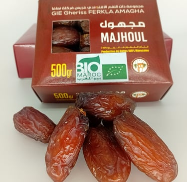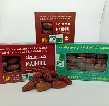 Les principales variétés valorisées sont : Mejhoul, Boufegous, Khalt et Azegza.